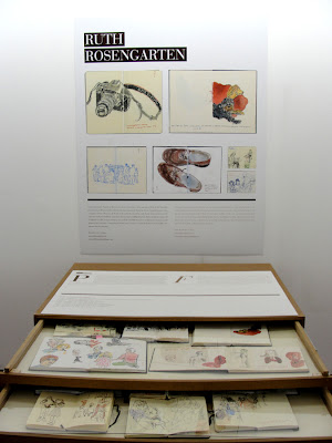 Eduardo Salavisa sent me photographs of the installation of the exhibition of sketchbooks in Almada, Portugal, including some of my work. I love the way the have mounted the show, using perspex tops to cover the drawers in which the various artists' sketchbooks lie open.